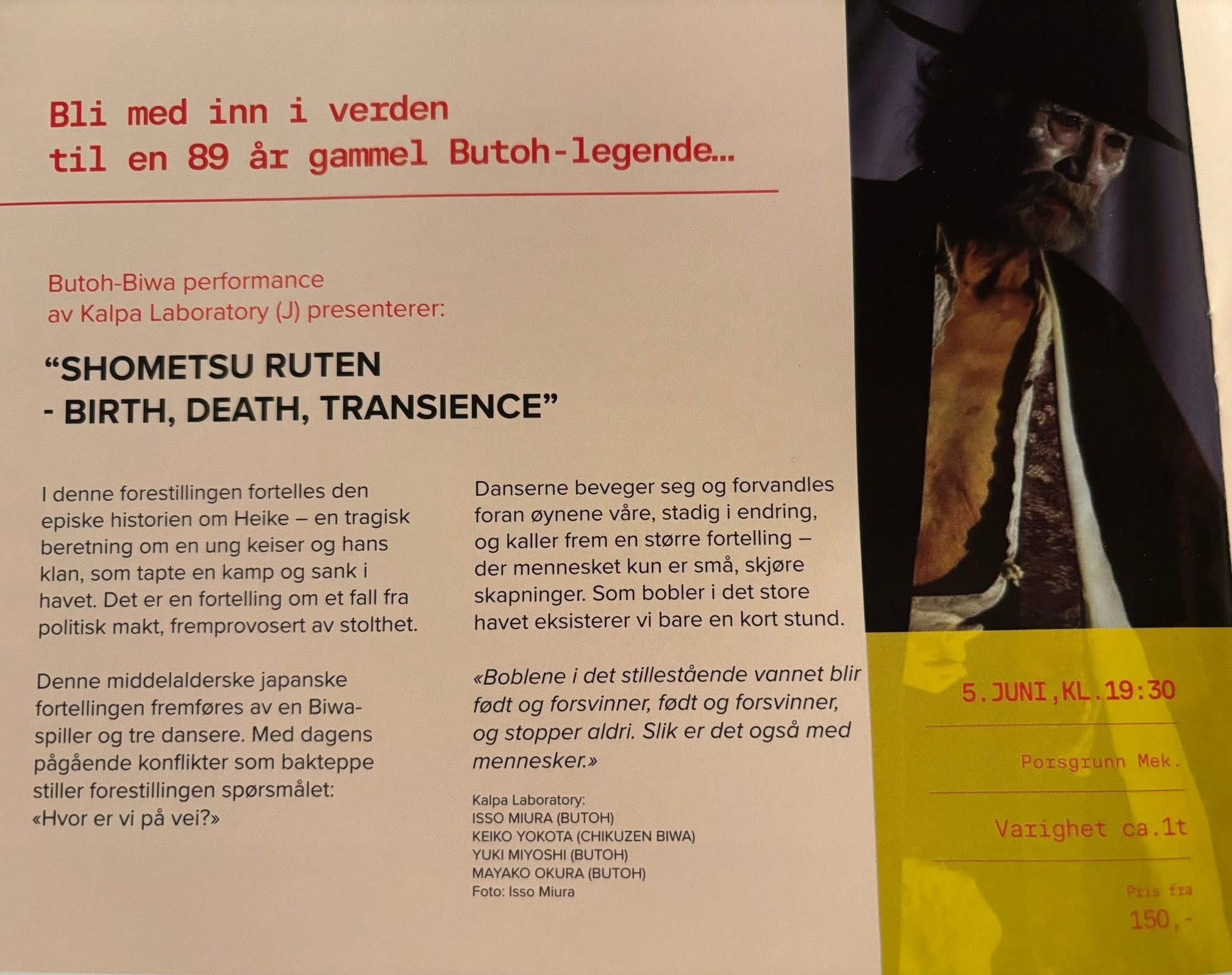 Butoh-Biwa PERFORMANCE “SHOMETSU RUTEN 生滅流転, Birth, Death, Transience"
