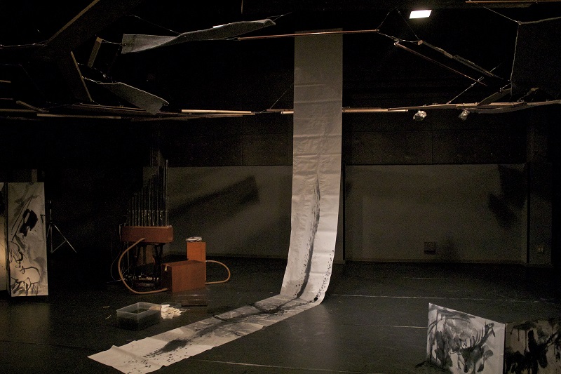 出演:鯨井謙太郒(ダンス)・藤田陽介(声、自作パイプオルガン)・鮫島圭代(墨絵)