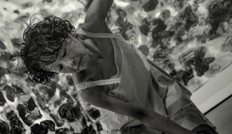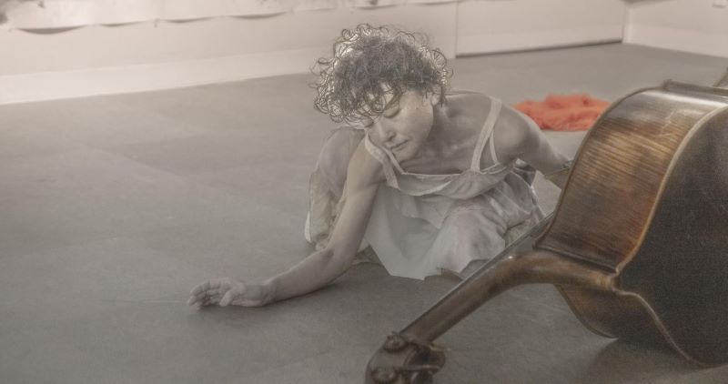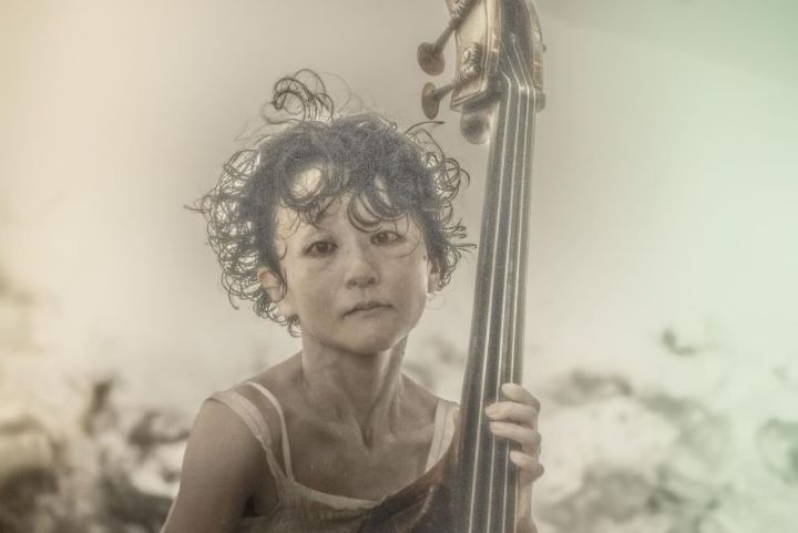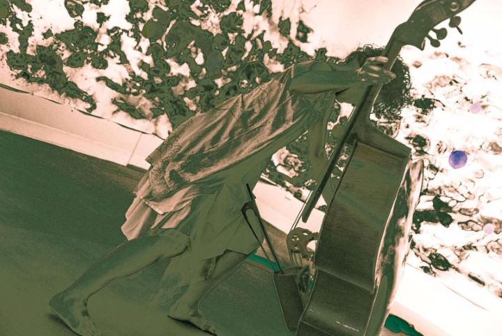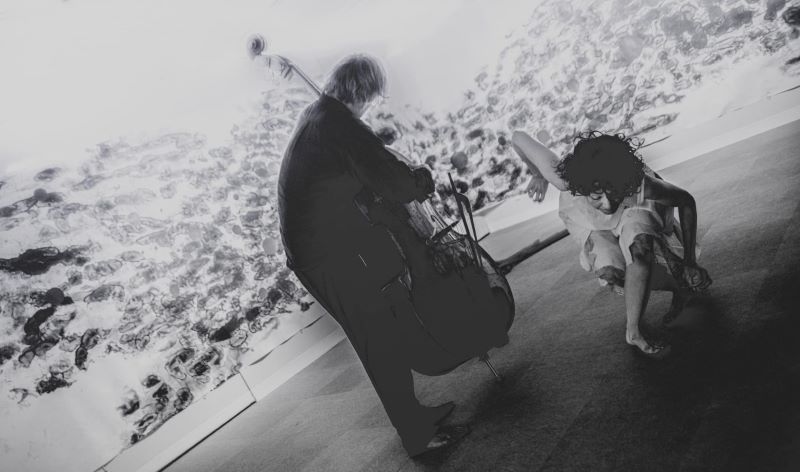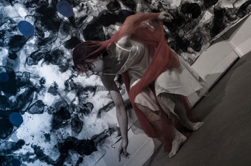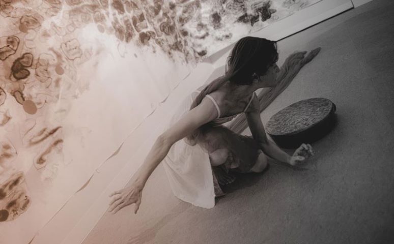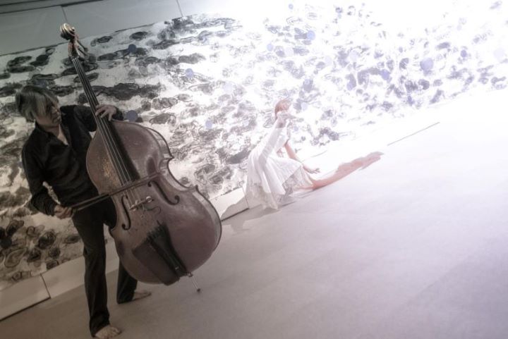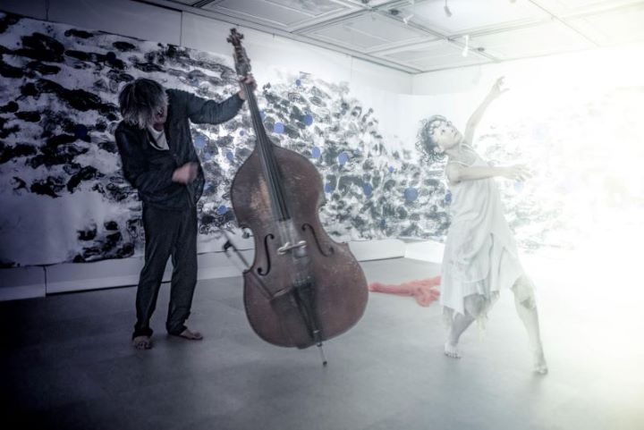 日本画、舞踏、コントラバスのコラボレーションパフォーマンス